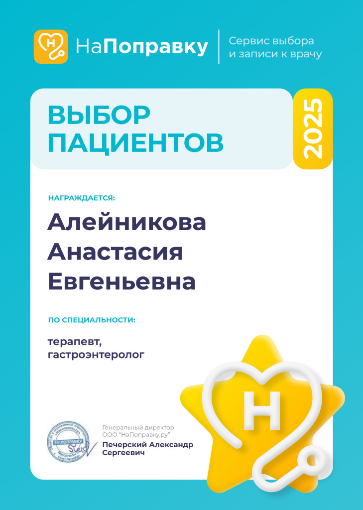 Алейникова Анастасия ЕвгеньевнаГастроэнтеролог, Терапевт -