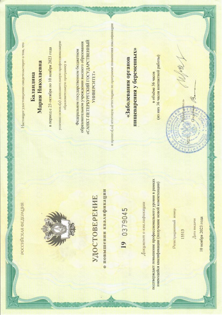 2023 г. - Санкт-Петербургский государственный университет «Заболевания органов пищеварения у беременных»