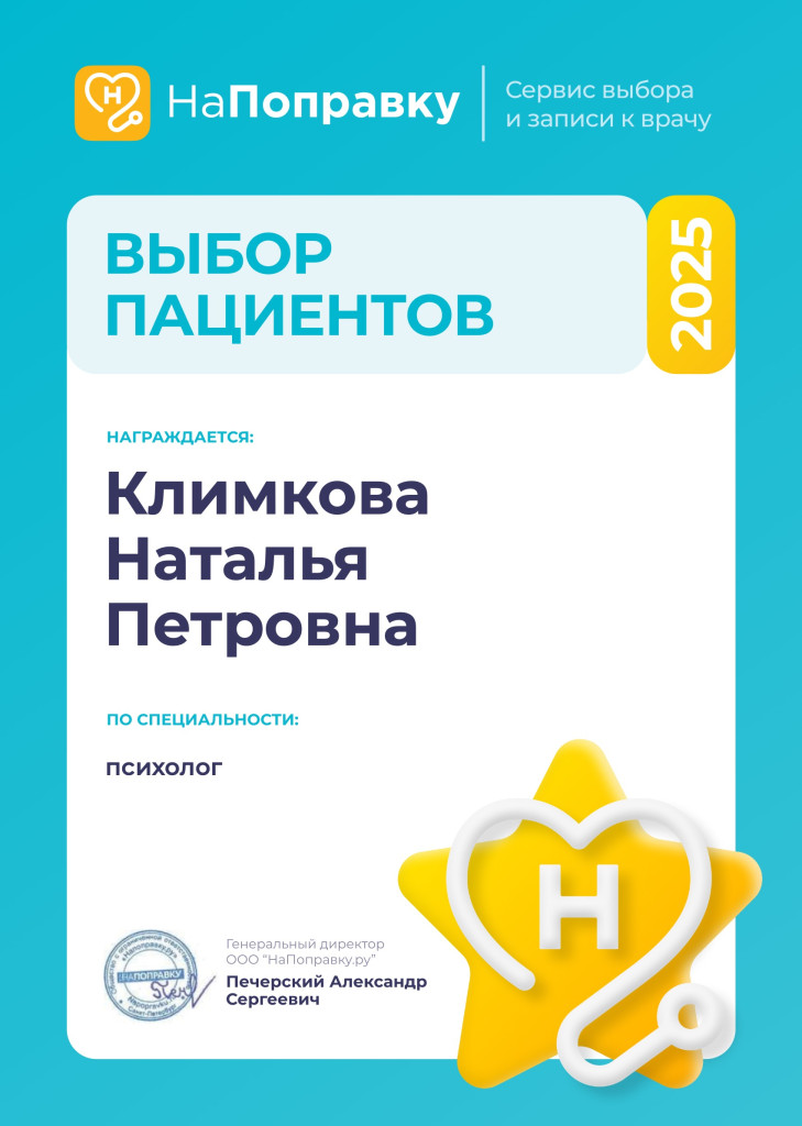 Наталья Петровна Климкова является членом ЕКПП (Европейская Конфедерация Психоаналитической Психотерапии), 2012 г.