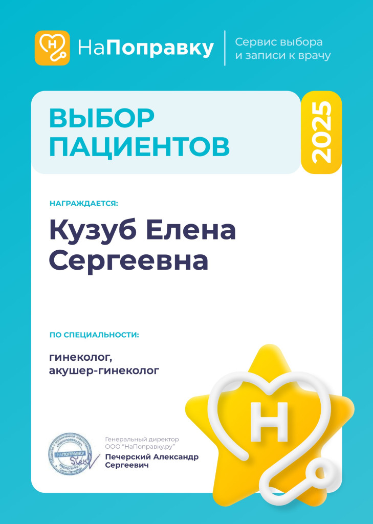 Елена Сергеевна зарекомендовала себя как отзывчивый, доброжелательный доктор, с большим вниманием относящийся к своим пациентам. Обязательно обратитесь к Елене Сергеевне за диагностикой и лечением при любых проблемах со здоровьем по профилю гинекологии.