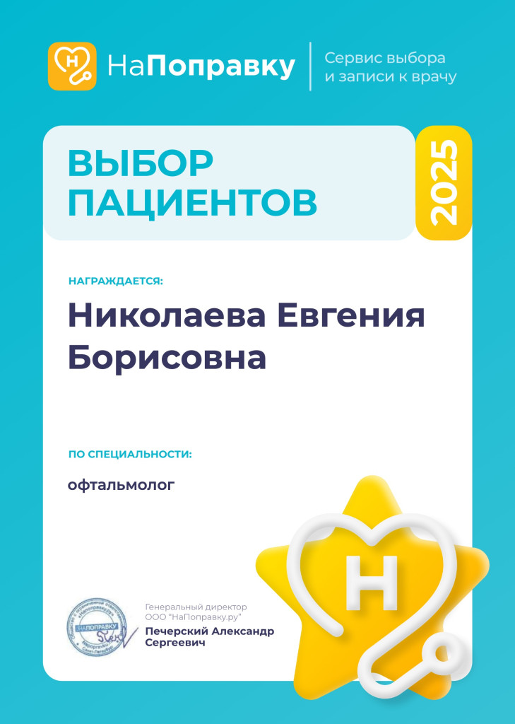 2022 г. - "Офтальмология", повышение квалификации при ФГБОУ ВО «Северо-Западный государственный медицинский университет им. И.И. Мечникова».