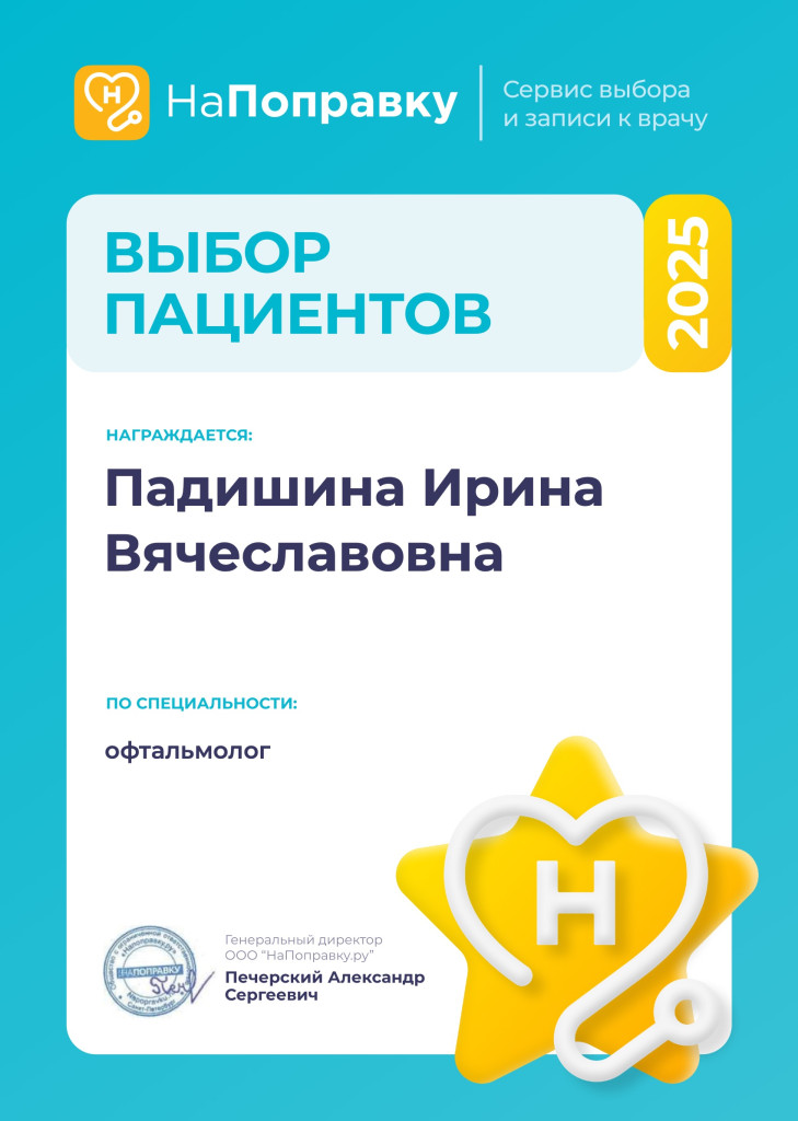 Также вы можете записаться к доктору для планового осмотра ребенка у офтальмолога, Ирина Вячеславовна с большим вниманием и заботой относится к своим пациентам, умеет найти подход как ко взрослым, так и к маленьким детям. Просим записываться к Ирине Вячеславовне Падишиной заранее ввиду её высокой востребованности.