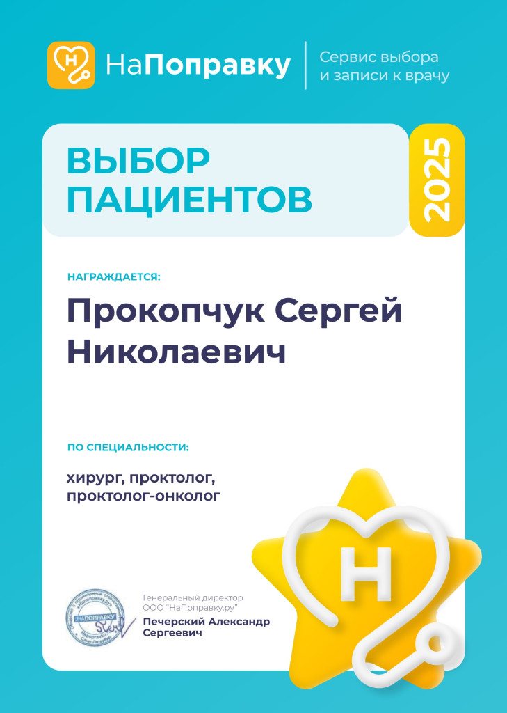 Сергей Николаевич Прокопчук выполняет полный спектр операций амбулаторной и стационарной хирургии при заболеваниях: