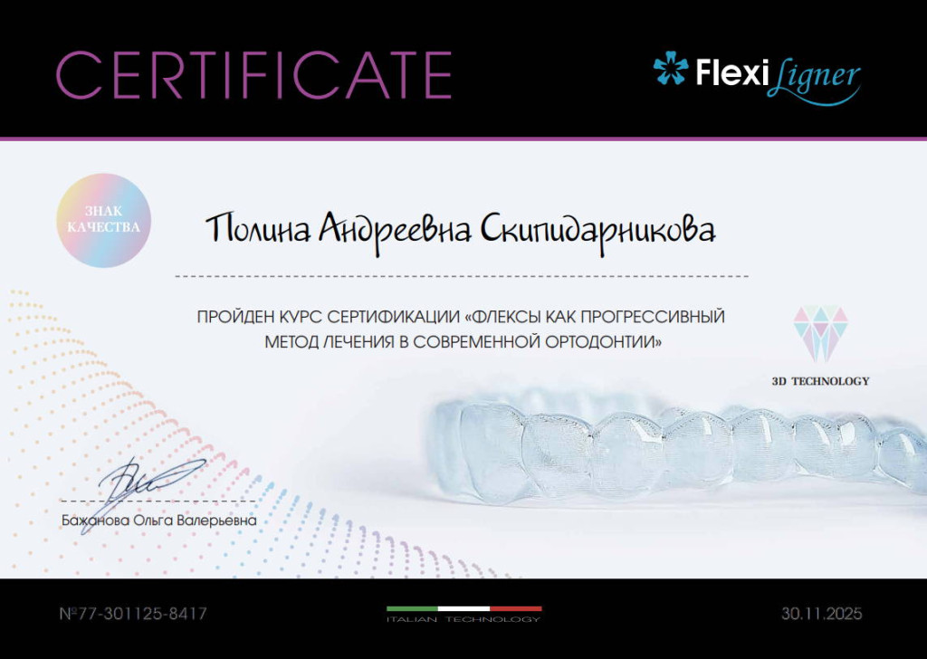 - 2025 г. - курс "Флексы как прогрессивный метод лечения в современной ортодонтии"