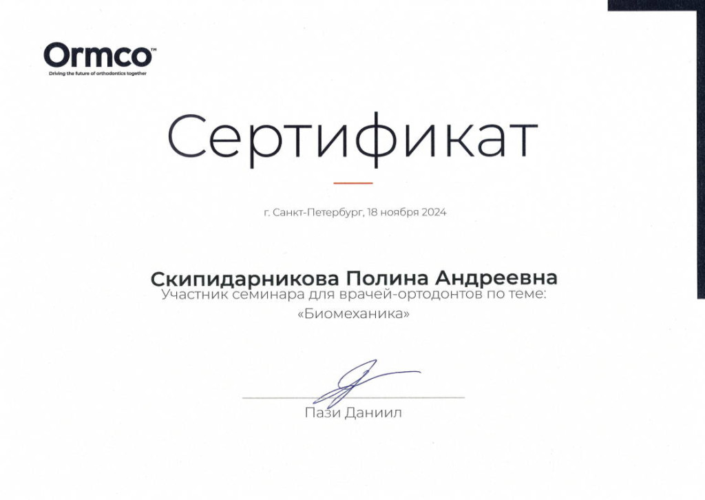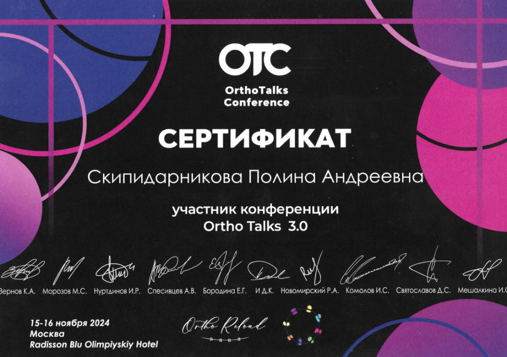- 2024 г. - участник конференции "Ortho Talks 3.0"