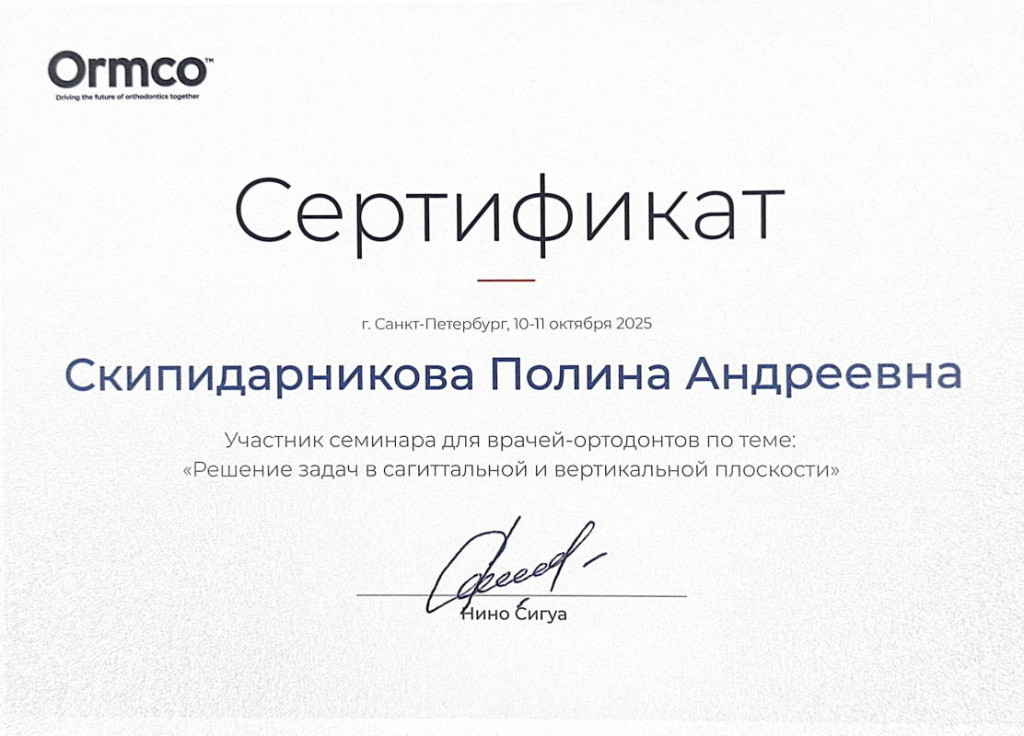- 2025 г. - участник семинара "Элайнеры Spark - преображение вашей практики"
