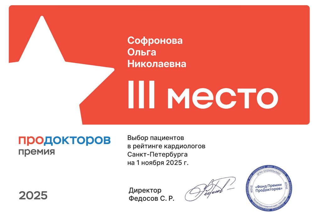 - Прошла профессиональную переподготовку по специальности кардиология в 2025 г.