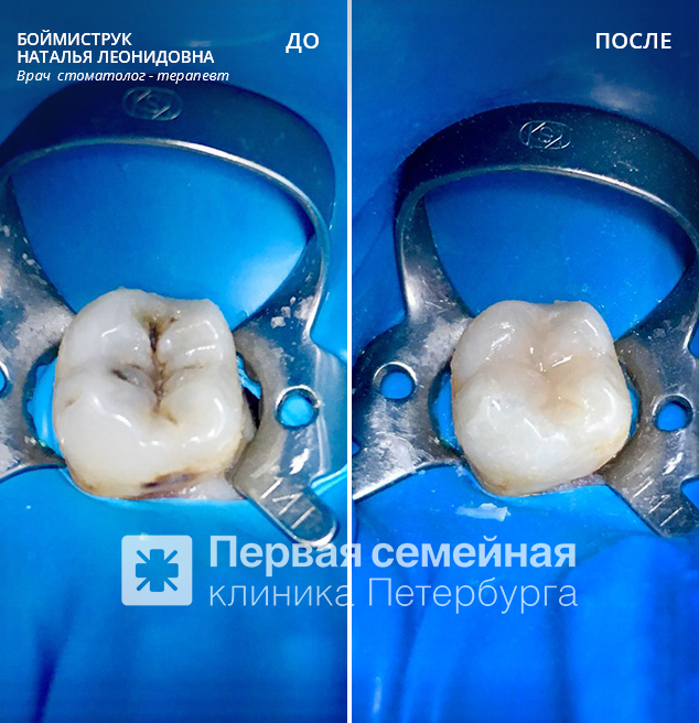 В процессе сверления очень важно полностью удалить инфицированную часть дентина, иначе есть риск получить рецидив в том же месте.