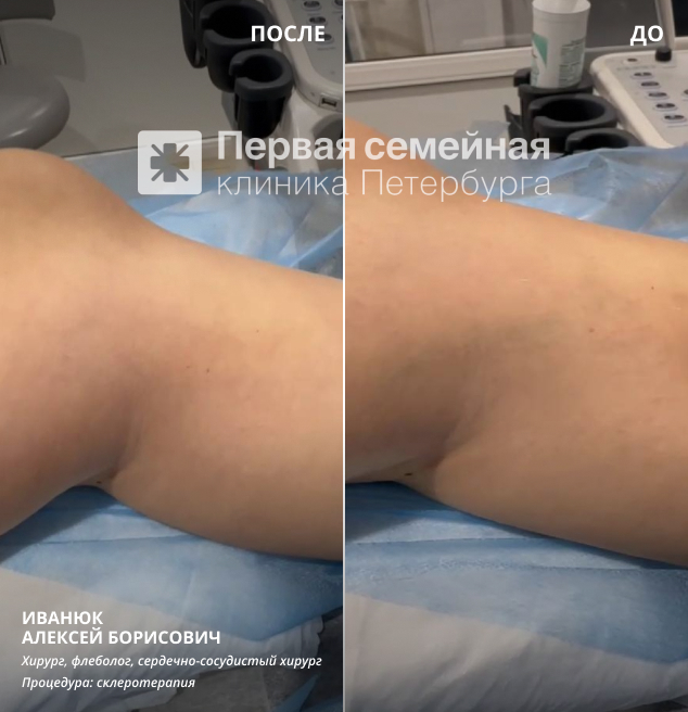 Результат: сосудистая сетка исчезает, отеки и дискомфорт устраняются, снижается риск осложнений. Первый результат виден уже через 1–1,5 месяца.